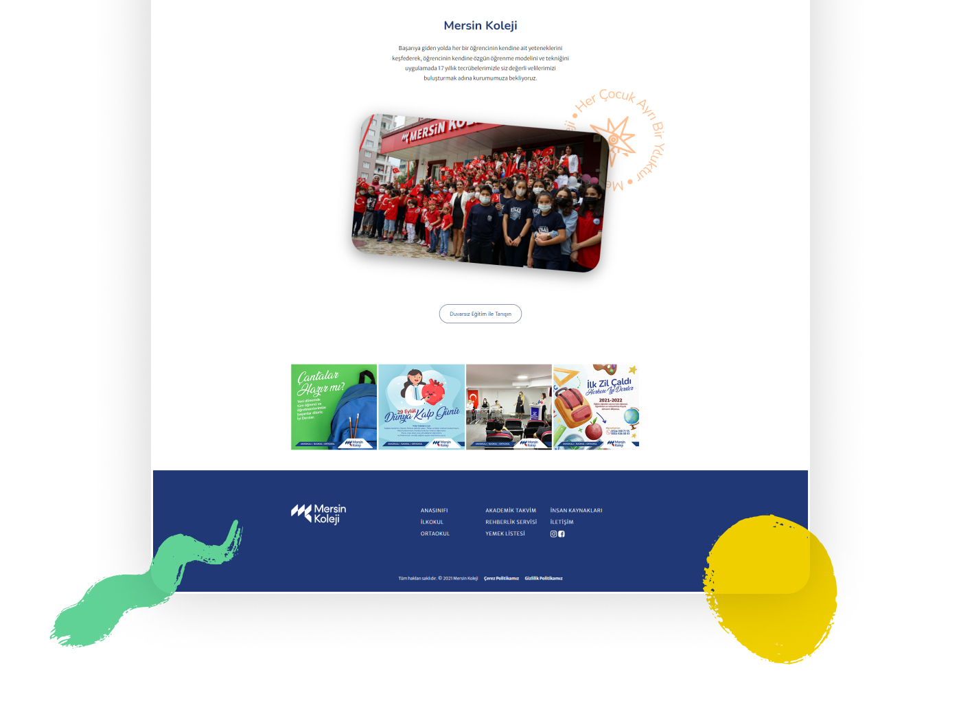 Anasınıfı, ilkokul ve ortaokul branşlarında eğitim veren Mersin Koleji'in web sitesi tamamlandı.